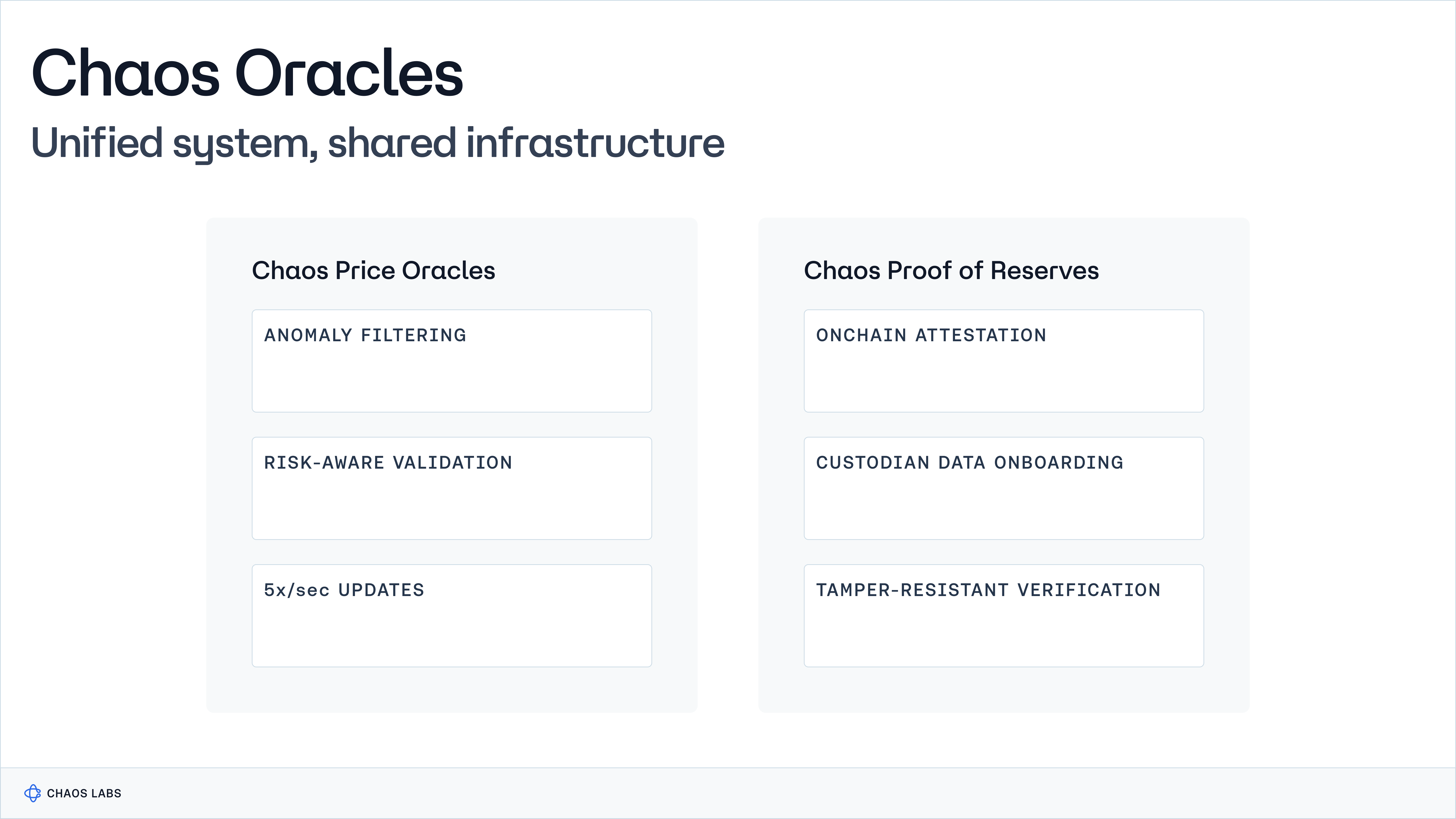 Chaos Oracles are a unified system that delivers price and reserve data through a shared infrastructure designed for continuous execution.